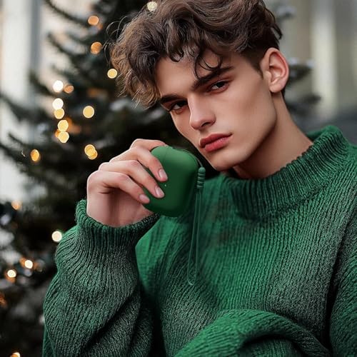 Generic - جراب حماية سيليكون الرايق متوافق مع سماعات ايربودز 2 برو مع سلسلة مفاتيح مضاد للصدمات من البولي يوريثين المقاوم للحرارة، أخضر