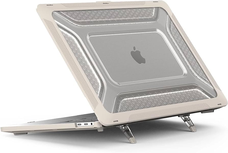 Generic - حافظة مع مسند قابل للطي لجهاز ماك بوك برو 16 انش A2485 (اصدار 2021) - غطاء حماية صلب سهل التركيب لجهاز ماك بوك برو 16 انش M1 برو / M1 ماكس رقاقة مع خاصية التعرف باللمس (بيج) مي كول، أكريليك