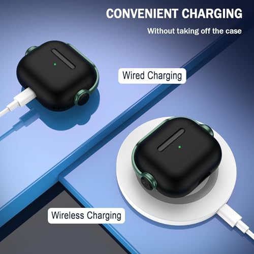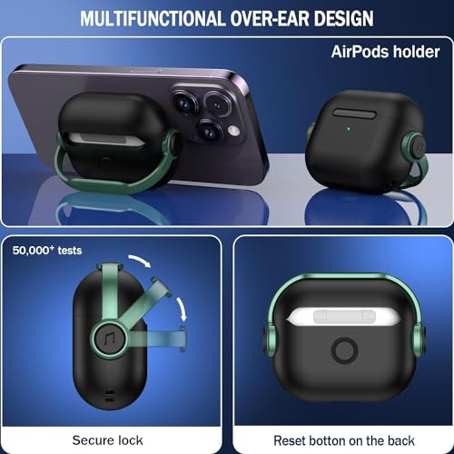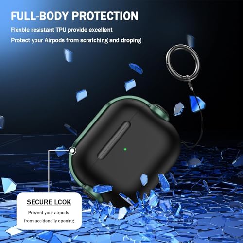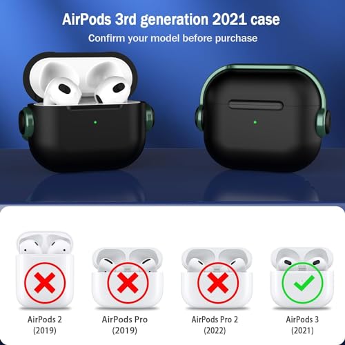 Generic - جراب حماية لسماعات ايربودز الجيل الثالث مع قفل امن، غطاء حماية لسماعات الاذن الموسيقية مع مجموعة تنظيف متوافقة مع ابل ايربودز 3 2021 علبة شحن (اسود واخضر)، أكريلونيتريل بوتادين ستايرين
