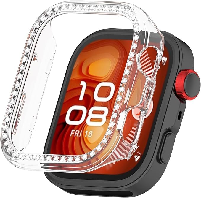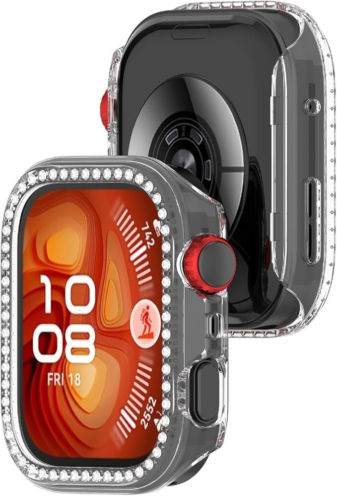 ELMO3EZZ - جراب رفيع مرصع بكريستال بشكل ألماس وبإطار صلب من البولي كربونات وبدون شاشة حماية بتصميم ممتص للصدمات لساعة هواوي فيت 4 للنساء والبنات، (لون شفاف)