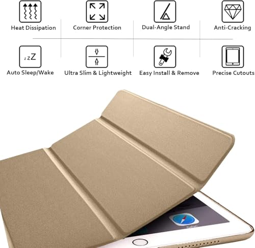 Generic - حافظة حماية متوافقة مع آيباد برو 11 بوصة الجيل الأول بتصميم غطاء نحيف مصنوعة من الجلد والبولي كربونات باللون الذهبي
