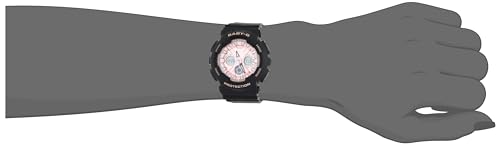 Casio - ساعة كاسيو بيبي جي BA-130-1A4DR انالوج بعقارب رقمية بسوار من الراتنج للنساء - اسود ووردي ذهبي
