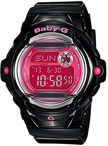 Casio - ساعة بيبي-جي الرقمية للنساء بمينا بينك وسوار من الراتنج بلون اسود كاسيو [BG-169R-1B]