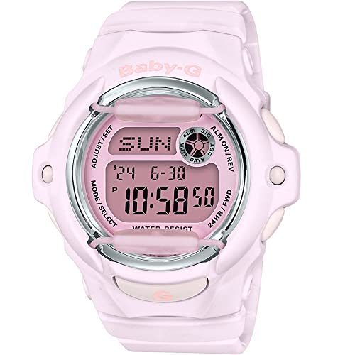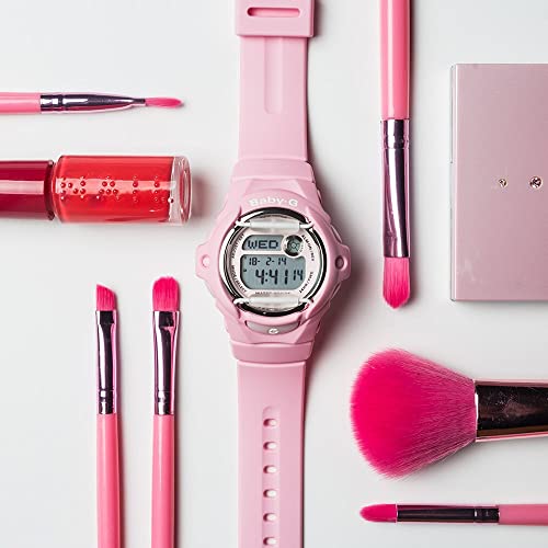 Casio - ساعة بيبي-جي رقمية للنساء من كاسيو بسوار الراتنج - روز بمينا وردي زهري