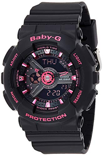 Casio - ساعة كاسيو بيبي-جي للنساء بمينا انالوج/رقمية وسوار راتنج - BA-111-1A، كوارتز، بمينا أسود