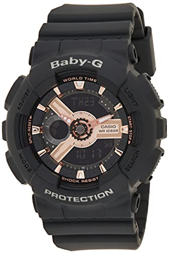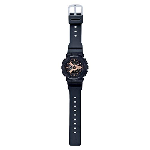 Casio - ساعة كاسيو بيبي-جي للنساء شاشة انالوج/رقمية سوار راتنج BA-110RG-1ADR، بمينا أسود