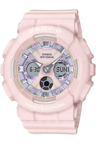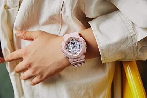Casio - ساعة رقمية بيبي-جي للنساء من كاسيو، بعرض أنالوج ومينا بلون وردي وسوار راتنج، موديل ba-130wp-4adr