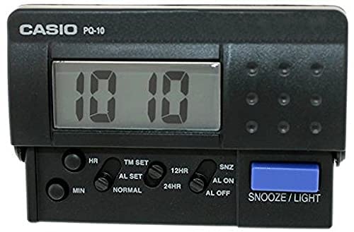 Casio - ساعة منبه رقمية للسفر، اسود PQ-10-1R، مادة صمغية