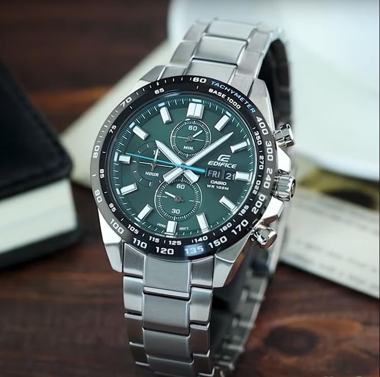 Casio - ساعة كرونوجراف قياسية للرجال من كاسيو، مينا أخضر وسوار صلب من فولاذ مقاوم للصدأ، EFR-574DB-3AVUDF.