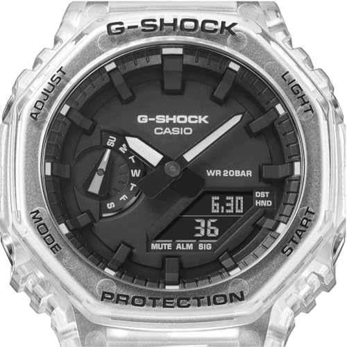 Casio - ساعة من كاسيو للرجال، بمينا سوداء وسوار شفاف، عرض انالوج-ديجيتال