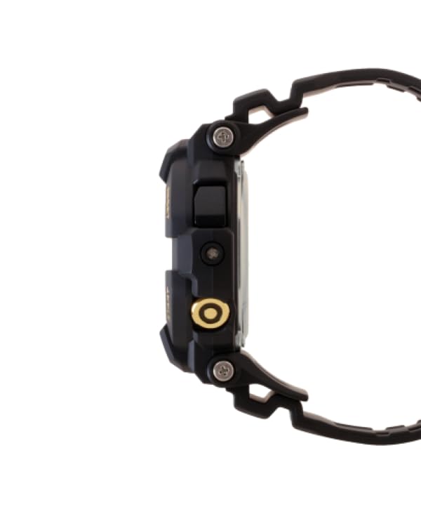 Casio - سلسلة جي شوك باللونين الأسود والذهبي من كاسيو مقاومة للماء حتى عمق 200 متر للصدمات تنبيهات اهتزاز وفلاش موديل GD-350GB-1 Digital للرجال