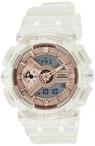 Casio - ساعة كاسيو جي-شوك بنظام انالوج - ديجيتال بسوار من الراتنج للنساء GMA-S110SR-7ADR - شفاف وذهبي وردي