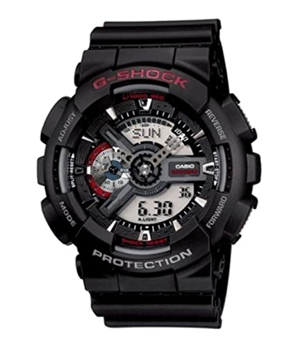 Casio - ساعة للرجال من "كاسيو" موديل "جي شوك" متعددة الاستخدامات لون اسود بمينا، انالوج بعقارب ورقمية، بسوار من البلاستيك المطاطي لون اسود - GA-110-1A