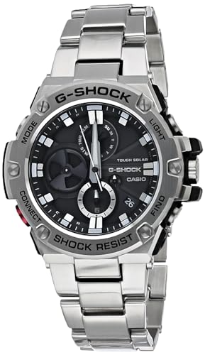 Casio - ساعة كاسيو انالوج كرونوغراف بسوار فولاذ مقاوم للصدأ للرجال من جي-شوك - فضي