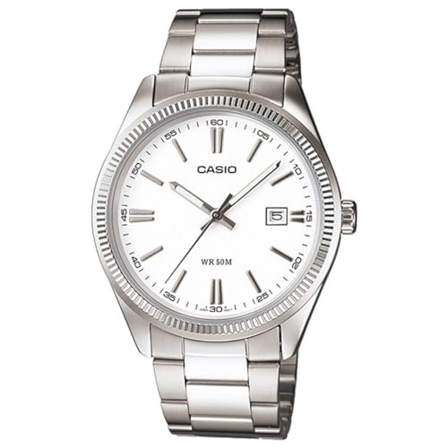 Casio - ساعة انالوج جينيرال ام تي بي للرجال من كاسيو، ابيض، -1302d-7a1vdf, فضي