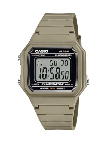 Casio - كاسيو ساعة انذار كرونوغراف رقمية مقاومة للماء حتى عمق 50 متر W217H-5AV بمينا شفاف بسوار اللون البيج الرجال