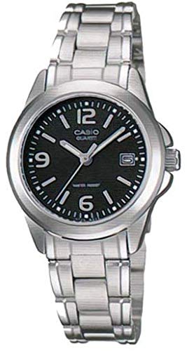 Casio - ساعة كاسيو للنساء (انالوج بعقارب، تصميم رسمي) LTP-1215A-1ADF، بمينا أسود، بسوار فضي