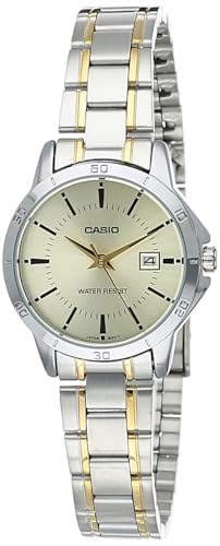 Casio - ساعة LTP-V004SG-9A انالوج بعقارب للنساء من كاسيو، بمينا أبيض، بسوار متعدد الألوان