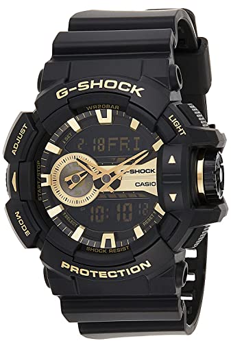 Casio - ساعة كاسيو جي شوك GA-400GB-1A9DR، انالوج-رقمي، للرجال، بمينا ذهب، بسوار أسود