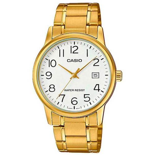 Casio - ساعة يد للرجال بمينا ابيض وسوار من الستانلس ستيل كاسيو - MTPV002G-7B2 انالوج بعقارب