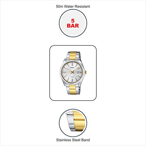 Casio - ساعة للرجال بشاشة انالوج بعقارب وحركة كوارتز وتصميم مينا فضي اللون وسوار من الستانلس ستيل جيس- MTP-1302SG-7A