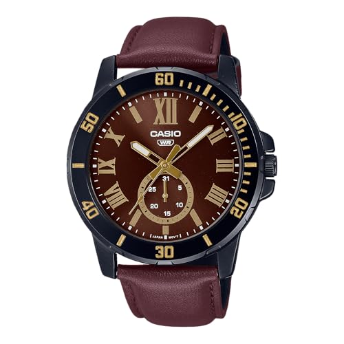 Casio - ساعة انالوج بعقارب للرجال بمينا بني وهيكل اسود مطلي بالايون مع سوار جلدي من كاسيو - موديل MTP-VD200BL-5BUDF
