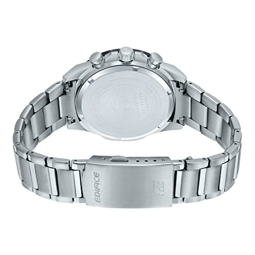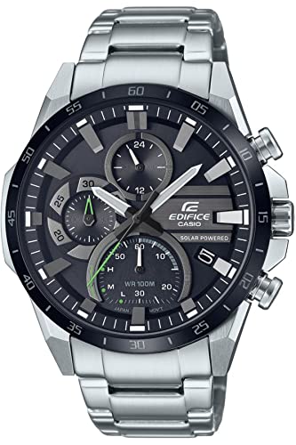 Casio - كاسيو ساعة اديفيس كرونوغراف تعمل بالطاقة الشمسية بعرض انالوج ومينا اسود وسوار من الستانلس ستيل باطار اسود مطلي بالايونات EQS-940DB-1AVUDF، فضي