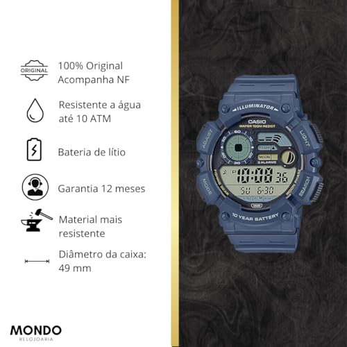 Casio - ساعة رقمية متعددة الوظائف من كاسيو بمينا شفاف وسوار الراتنج للرجال WS-1500H-2AVDF