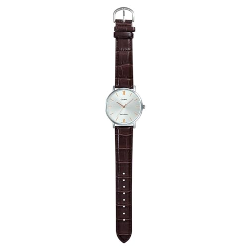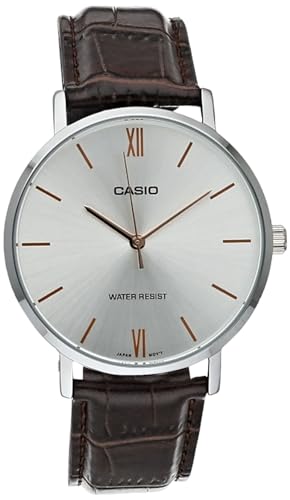 Casio - ساعة كاسيو انالوج دائرية للرجال موديل MTP-VT01L-7B2UDF من جلد تمساح بني منقوش