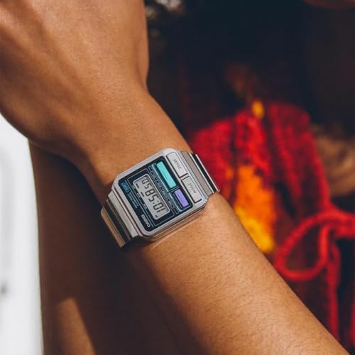 Casio - ساعة يد رقمية كلاسيكية من الفولاذ المقاوم للصدأ كاسيو