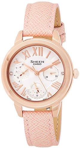 Casio - ساعة كاسيو شين للنساء بسوار من الجلد، لون فضي - She-3059Pgl-7Audr، انالوج بعقارب