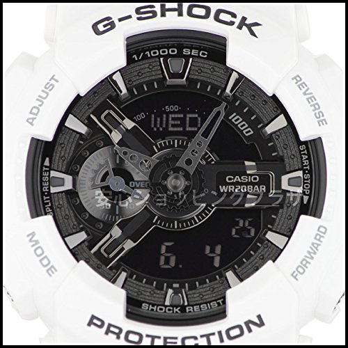 Casio - كاسيو ساعة رياضية للجنسين انالوج-رقمي مطاطي - GA-110GW-7A، بمينا أسود، بسوار أبيض