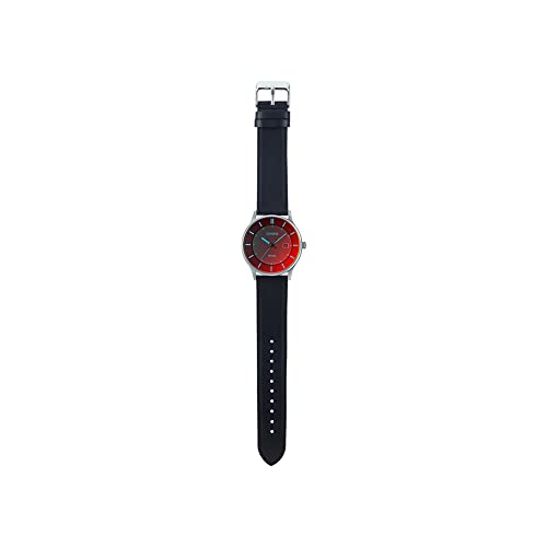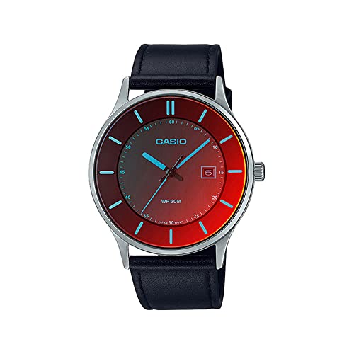 Casio - ساعة كاسيو للجنسين بعرض انالوج وعرض التاريخ ومينا أحمر وزجاج مستقطب وسوار جلدي MTP-E605L-1EVDF