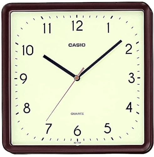 Casio - ساعة حائط انالوج مربعة الشكل من كاسيو ، بمينا بيضاء وإطار مادة الراتنج - IQ 152 5DF بني للبالغين الجنسين