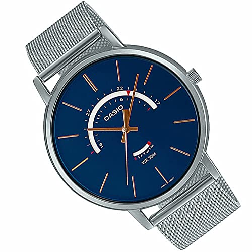 Casio - ساعة انالوج بعقارب وسوار من الستانلس ستيل للرجال من كاسيو، موديل MTP-B105M-2AVDF، بلون فضي وازرق