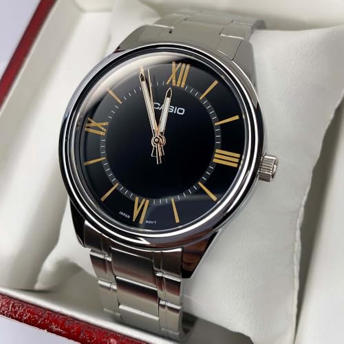 Casio - ساعة انالوج بعقارب وسوار ستانلس ستيل للرجال MTP-V005D-1B5UDF من كاسيو - فضي واسود