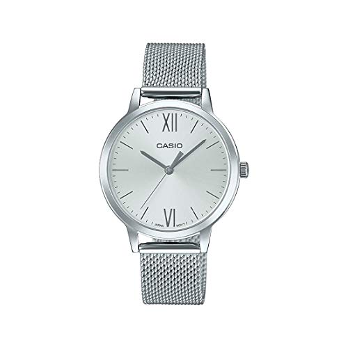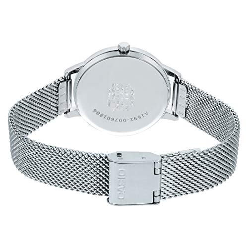 Casio - ساعة للنساء من كاسيو موديل LTP-E157M-7ADF بسوار شبكي مصنوع من الستانلس ستيل وانالوج بعقارب لون فضي, فضي، تناظري