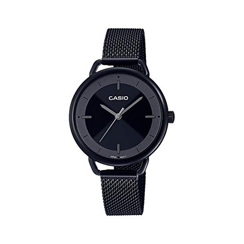 Casio - ساعة يد انالوج بعقارب من كاسيو بسوار شبكي مصنوع من الستانلس ستيل مناسبة للنساء - اسود، موديل LTP-E413MB-1AD