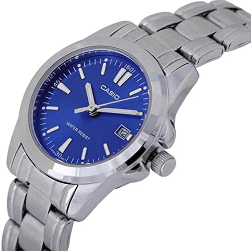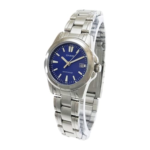 Casio - ساعة نسائية انالوج بعقارب وحركة كوارتز ومينا ازرق من كاسيو بسوار الستانلس ستيل - Ltp 1215A 2A2Df