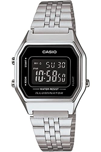 Casio - ساعة يد بسوار من الستانلس ستيل ومينا اسود للنساء موديل LA680WA-1BDF كاسيو انالوج بعقارب