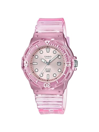 Casio - كاسيو ساعة كاجوال كوارتز من الراتنج الشفاف للنساء سلسلة دايف سيريز LRW-200HS-4EVCF بمينا وردي