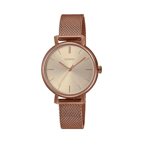 Casio - ساعة بمينا ذهبي وسوار بني للنساء من كاسيو، موديل LTP-2024VMR-9CDR