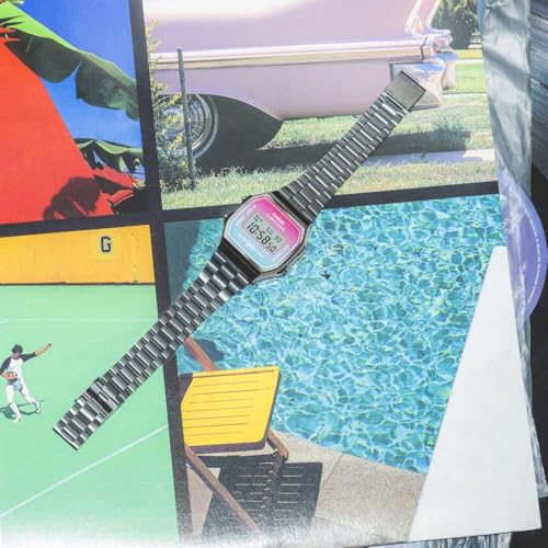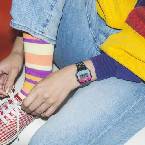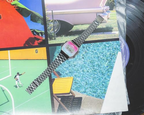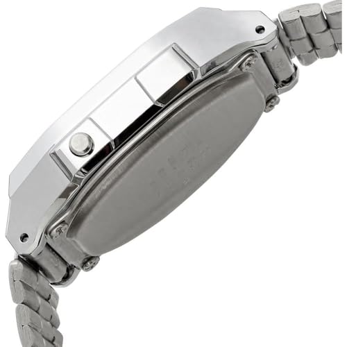 Casio - ساعة رقمية عتيقة للنساء بمينا رمادي وسوار من فولاذ مقاوم للصدأ A168WERB-2ADF من كاسيو