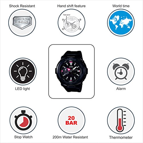 كاسيو ساعة رياضية للنساء من الراتنج بلون اسود Bga 225G 1Adr، كوارتز، انالوج رقمي