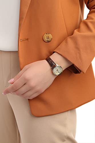 Casio - ساعة انالوج بعقارب وحركة كوارتز بسوار جلد للنساء من كاسيو، LTP-V005GL-9BUDF، بمينا بنى