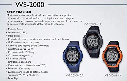Casio - ساعة رياضية مزودة بمستشعر سرعة ومتتبع خطوات للرجال من كاسيو، لون اسود، موديل WS-2000H-1AV, أسود