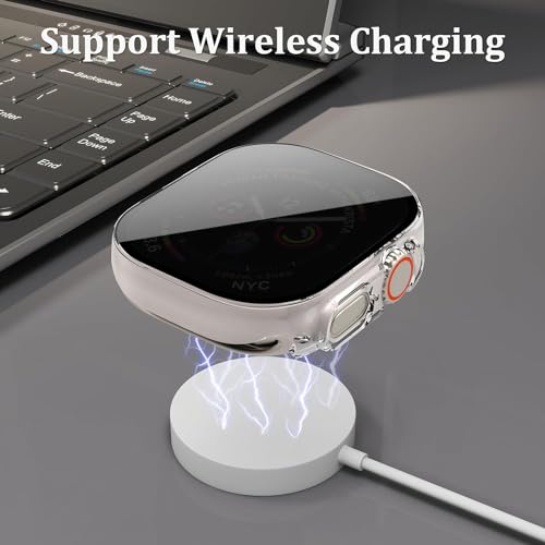 - [حافظة حماية كاملة]: تغطي شاشة الحماية المصنوعة من الزجاج المقوى الحواف الأمامية والمنحنية بالكامل لساعة آبل الترا 49 ملم تمامًا، وتغطي الحافظة الصلبة المصنوعة من البولي كربونات إطار الساعة وهيكلها (الجزء الخلفي بتصميم مجوف دون التأثير على الشحن عند وضع الحافظة). احمِ ساعة آبل الخاصة بك من الخدوش والصدمات والسقوط العرضي.