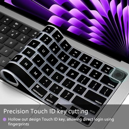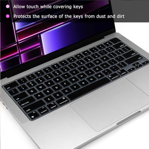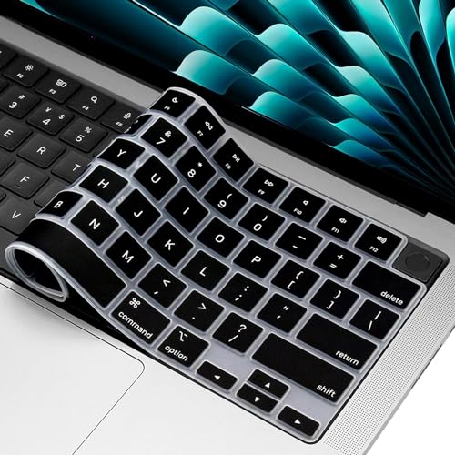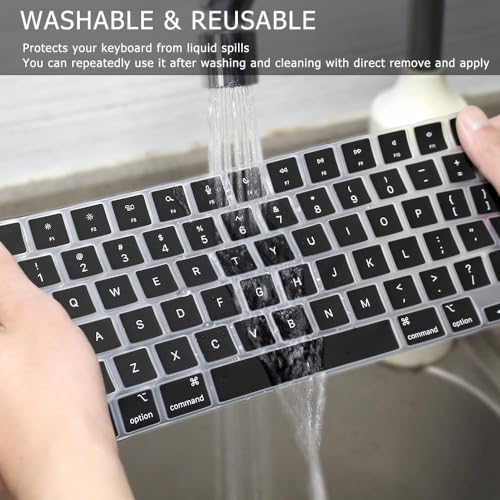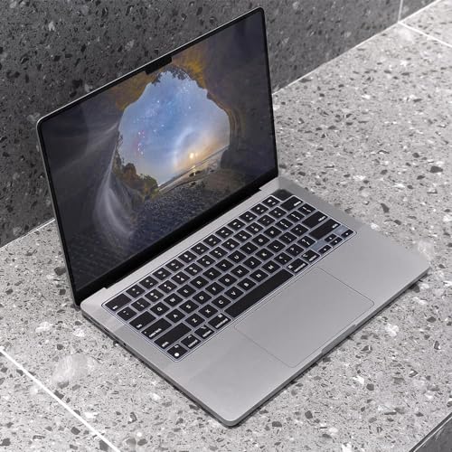 CASOSHIELD - غطاء كيبورد سيليكون لماك بوك اير 15.3 بوصة A2941 13.6 بوصة A2681 وبرو 14 بوصة 16 بوصة A2779 A2780 A2442 A2485، واقي بتخطيط أمريكي لشرائح M3 M2 M1 ماكس/برو إصدار 2023 2022 2021 من كاسوشيلد، أسود