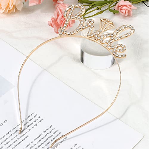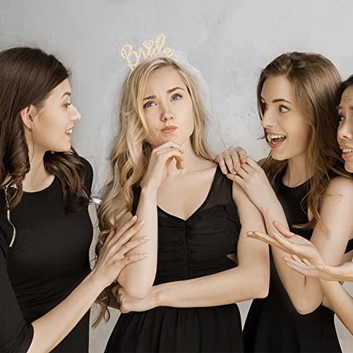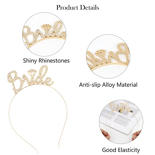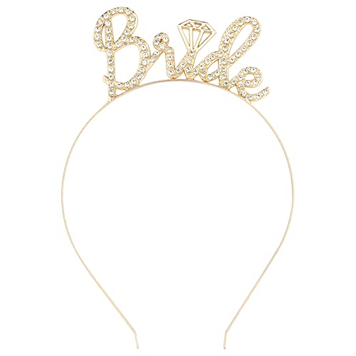 Casoty - تاج للعروس مرصع بحجر الراين، رباط رأس للعروس لحفل توديع العزوبية من كازوتي، ذهبي