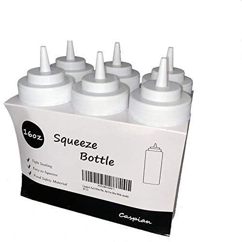 caspian - طقم من 6 زجاجات توابل بلاستيكية بيضاء شفافة سعة 16 اونصة للمطبخ او للاستخدام الخارجي كاسباين البولي بروبلين
